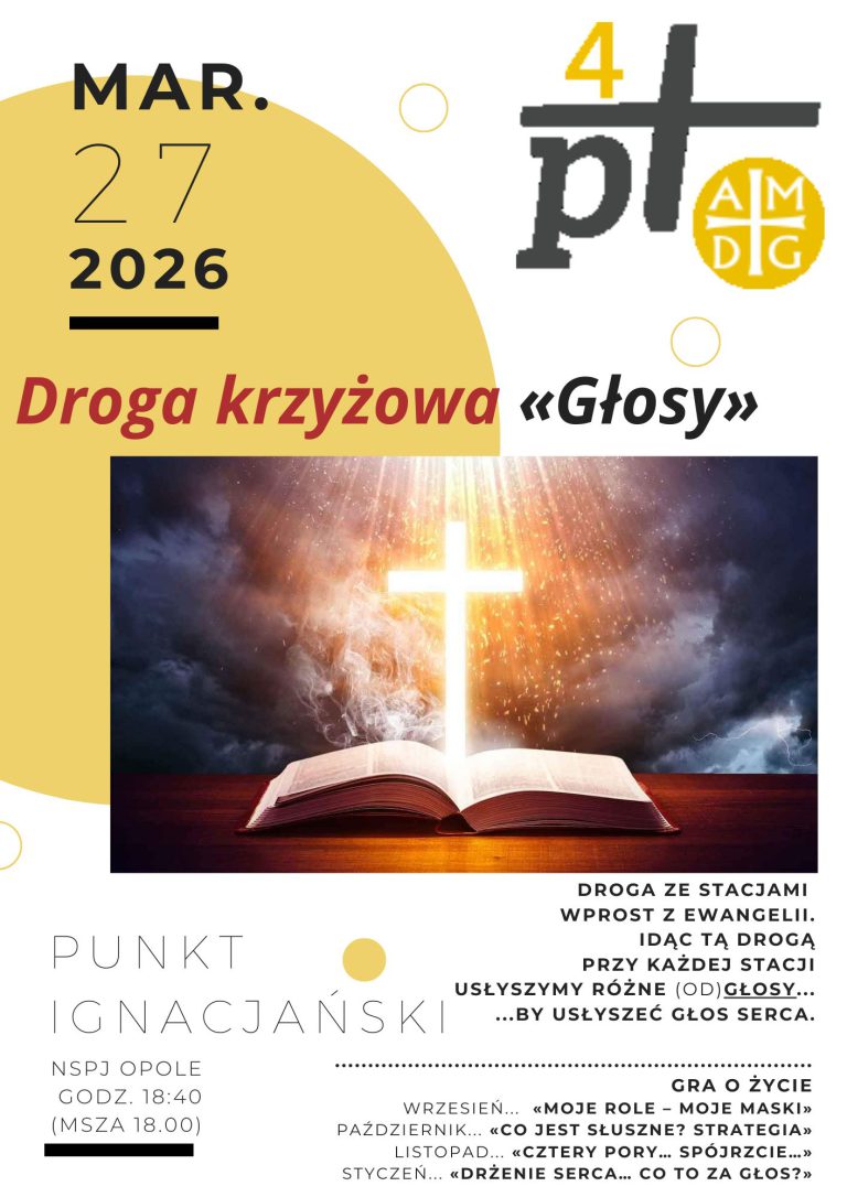 Nocna Pielgrzymka Mężczyzn na Górę św. Anny odbędzie się w piątek 27 marca. Start po Mszy o godz. 18.00, z opcją też, że po (ignacjańskiej) Drodze krzyżowej w kościele – błogosławieństwo na drogę ok. 19.20 7.00 – Msza na Górze