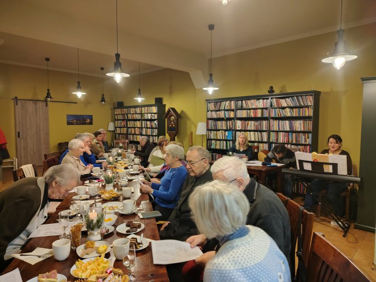 W okresie świątecznym tradycyjnie śpiewa się kolędy. My mieliśmy to szczęście śpiewać kolędy w gronie wspaniałych ludzi. Na zaproszenie Ojca Józefa przybyliśmy na wtorkowe spotkanie seniorów – Juliusz, Virginia i Ja (Iza). Przy akompaniamencie pianina i gitary wyśpiewaliśmy chwałę małemu