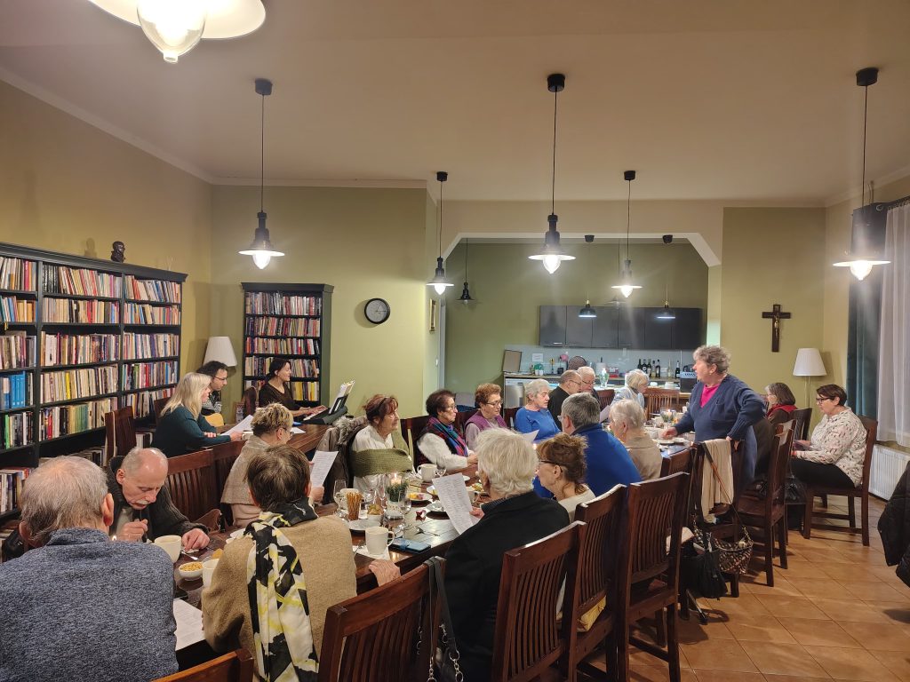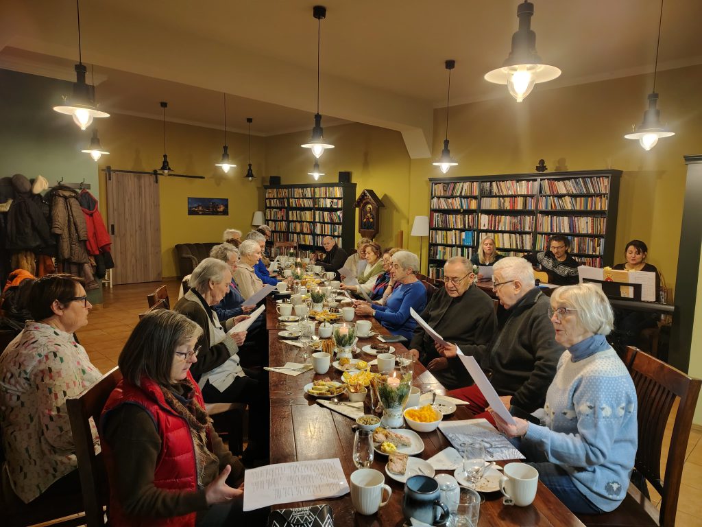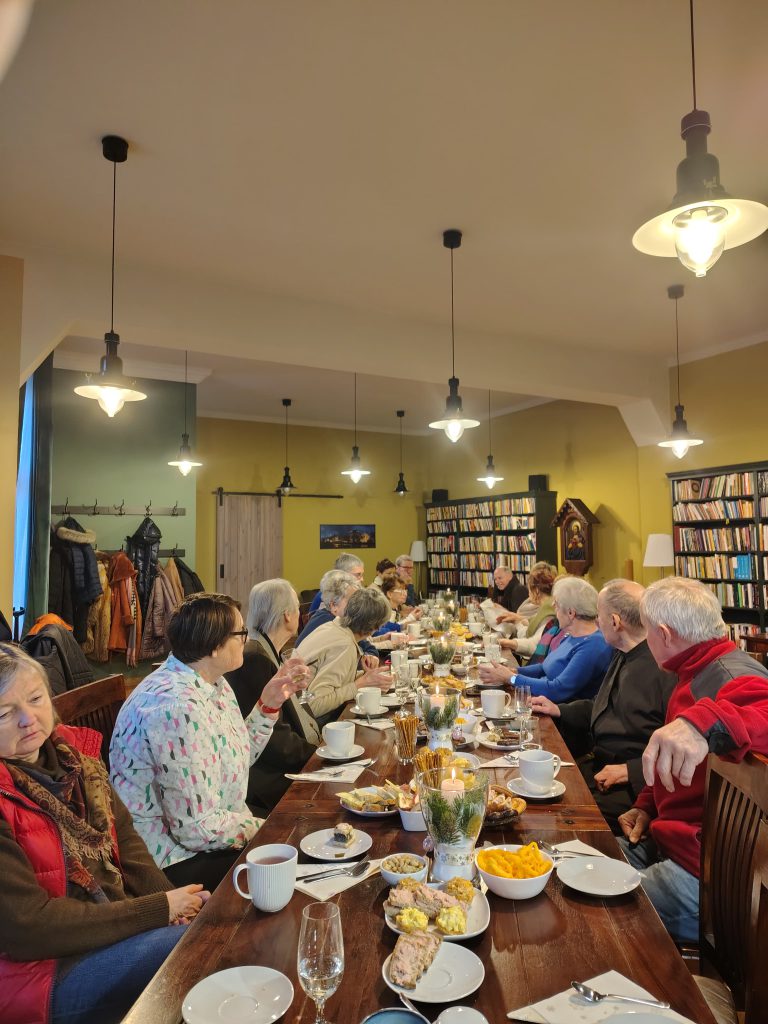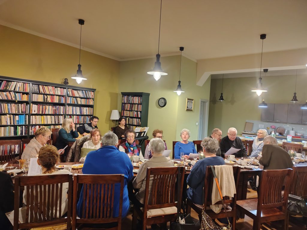My mieliśmy to szczęście śpiewać kolędy w gronie wspaniałych ludzi. Na zaproszenie Ojca Józefa przybyliśmy na wtorkowe spotkanie seniorów – Juliusz, Virginia i Ja (Iza). Przy akompaniamencie pianina i gitary wyśpiewaliśmy chwałę małemu Jezuskowi. Seniorzy okazali się wspaniałymi śpiewakami i przez godzinę z kawiarenki dobiegał radosny śpiew wielu głosów.