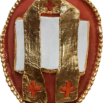 Na pierwszym odsłoniętym herbie zobaczyliśmy jak liter X (chi) i P (rho) są połączone ze sobą i stanowią pierwsze litery słowa CHRYSTUS – ΧΡΙΣΤΟΣ (w j. greckim). Jest to jeden z najstarszych symboli chrześcijańskich mówiący o tym, że Jezus jest Chrystusem (czyli Mesjasz).