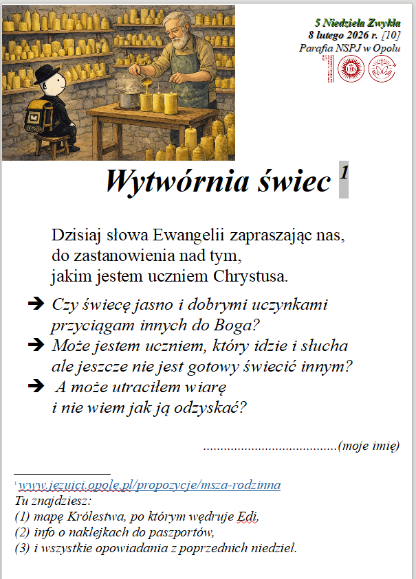 Wsłuchajmy się w słowa Ewangelii w ciszy serca. Porozmawiamy z Panem Jezusem o tym, jakim jestem uczniem i czego potrzebuje aby stawać się “świecą”, która swoim zapachem przyciąga innych a blaskiem prowadzi do Boga.
