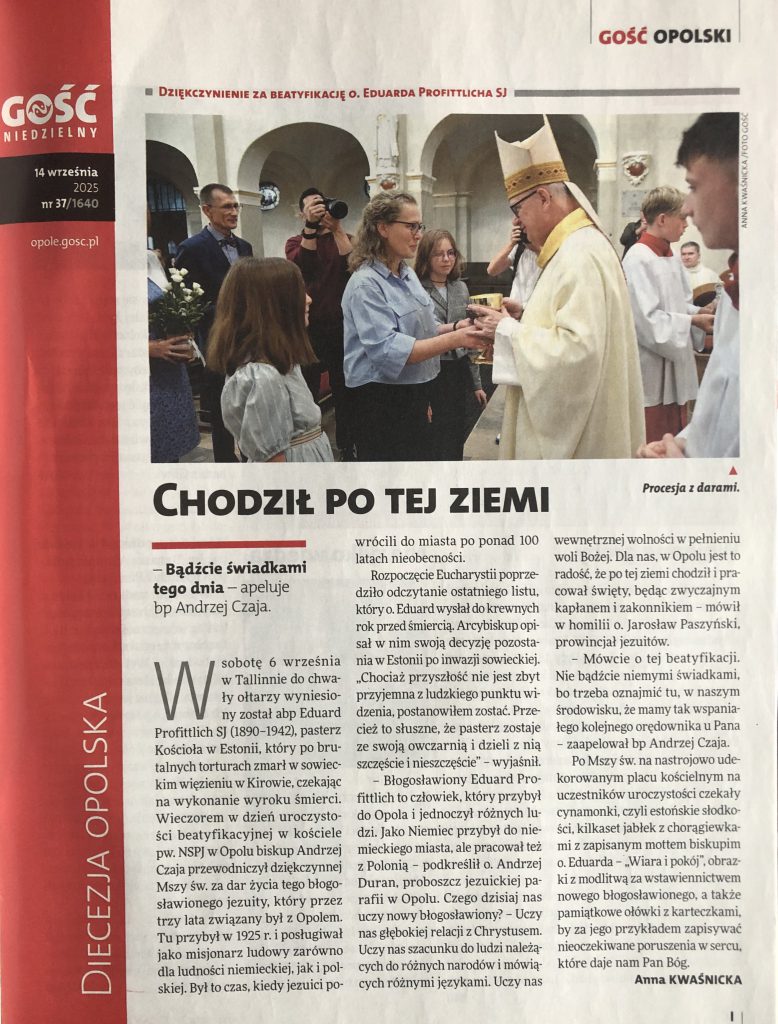 Arcybiskup Eduard Profittlich zostanie beatyfikowany w sobotę, 6 września w Tallinie. To właśnie Estonia była krajem, w której budował kościół katolicki a został tam wysłany przez Niemiecką Prowincję Zakonu Jezuitów. Jednak wcześniej, przez trzy lata był duszpasterzem w Opolu a w związku z tym planujemy uroczystości beatyfikacyjne na terenie naszej parafii